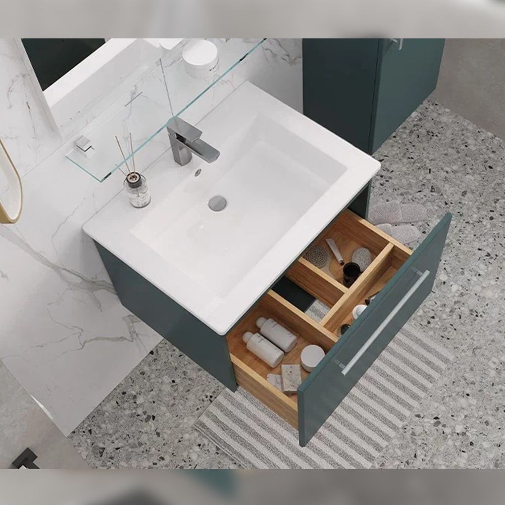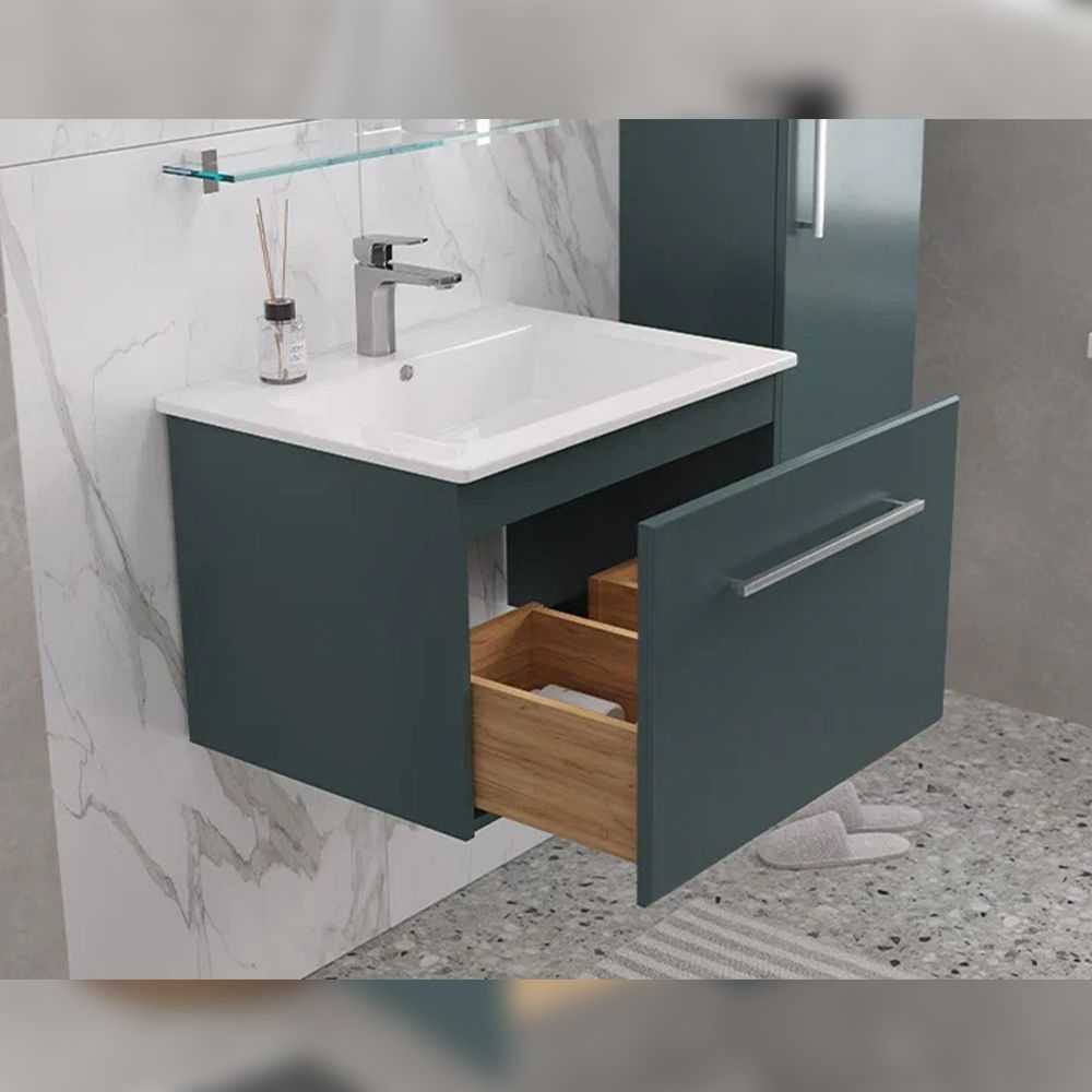 Тумба под раковину подвесная Velvex Posse tp.POS.OSK.65.1Y верде, 65 см: 1 выдвижной ящик с механизмом плавного закрывания.