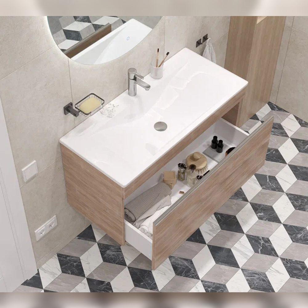 Тумба под раковину подвесная Velvex Pulsus tp.PUL.PUL.100.1Y дуб сонома, 100 см: 1 выдвижной ящик.