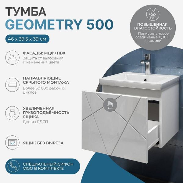 Тумба под раковину подвесная VIGO Geometry 032, 50 см.Гарантийный срок 2 года.Монтаж: подвесной.Доводчик: нет.Нажимной механизм: да.