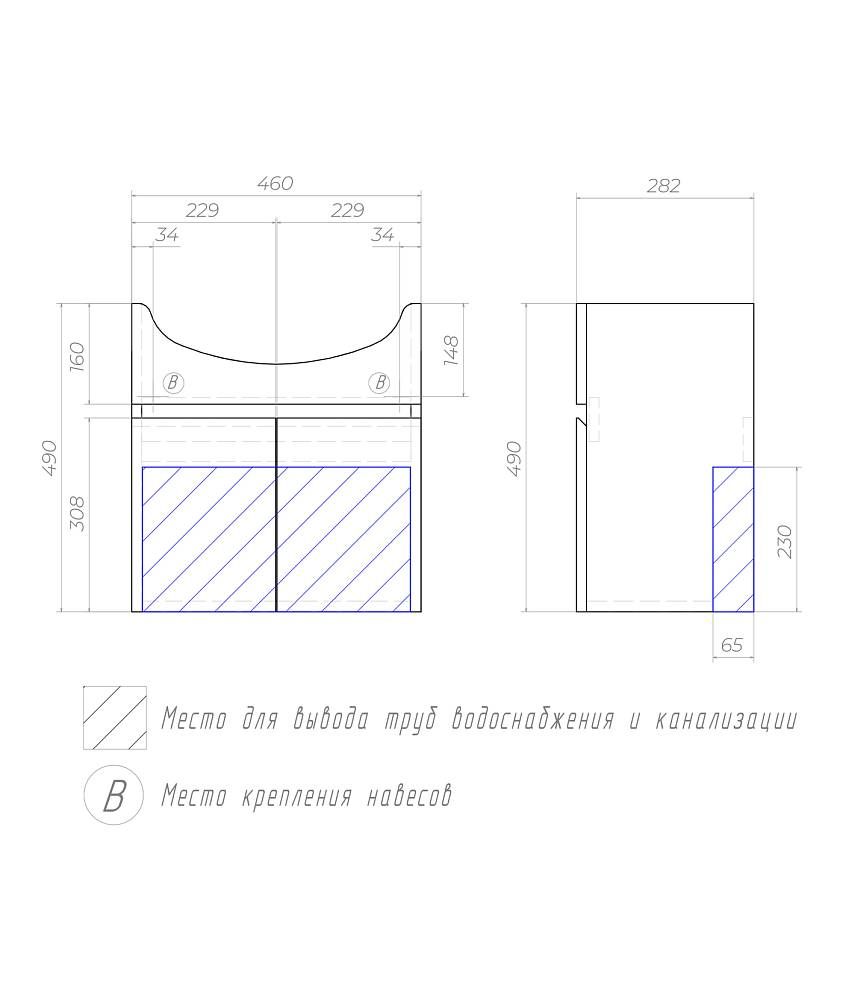 2 дверцы. Специальный сифон Vigo в комплекте.Материал корпуса и фасада: влагостойкая ЛДСПДверцы: петли с механизмом плавного закрыванияОтсутствие лицевой фурнитуры – интегрированная в фасад ручка