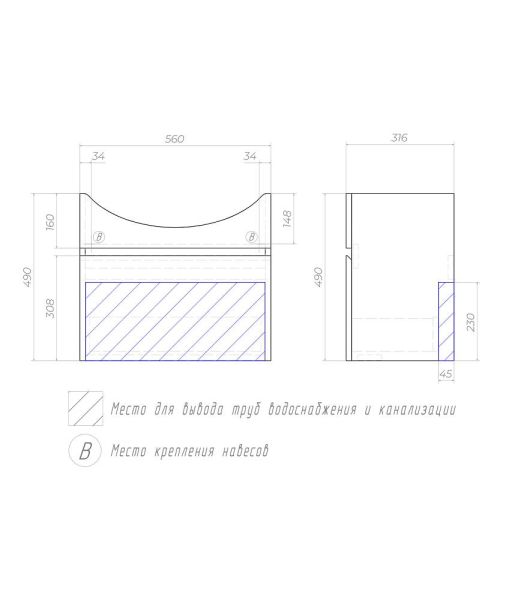 Тумба под раковину подвесная Vigo Wing tp.WIN.BAL.60.1Y 60 см белый
