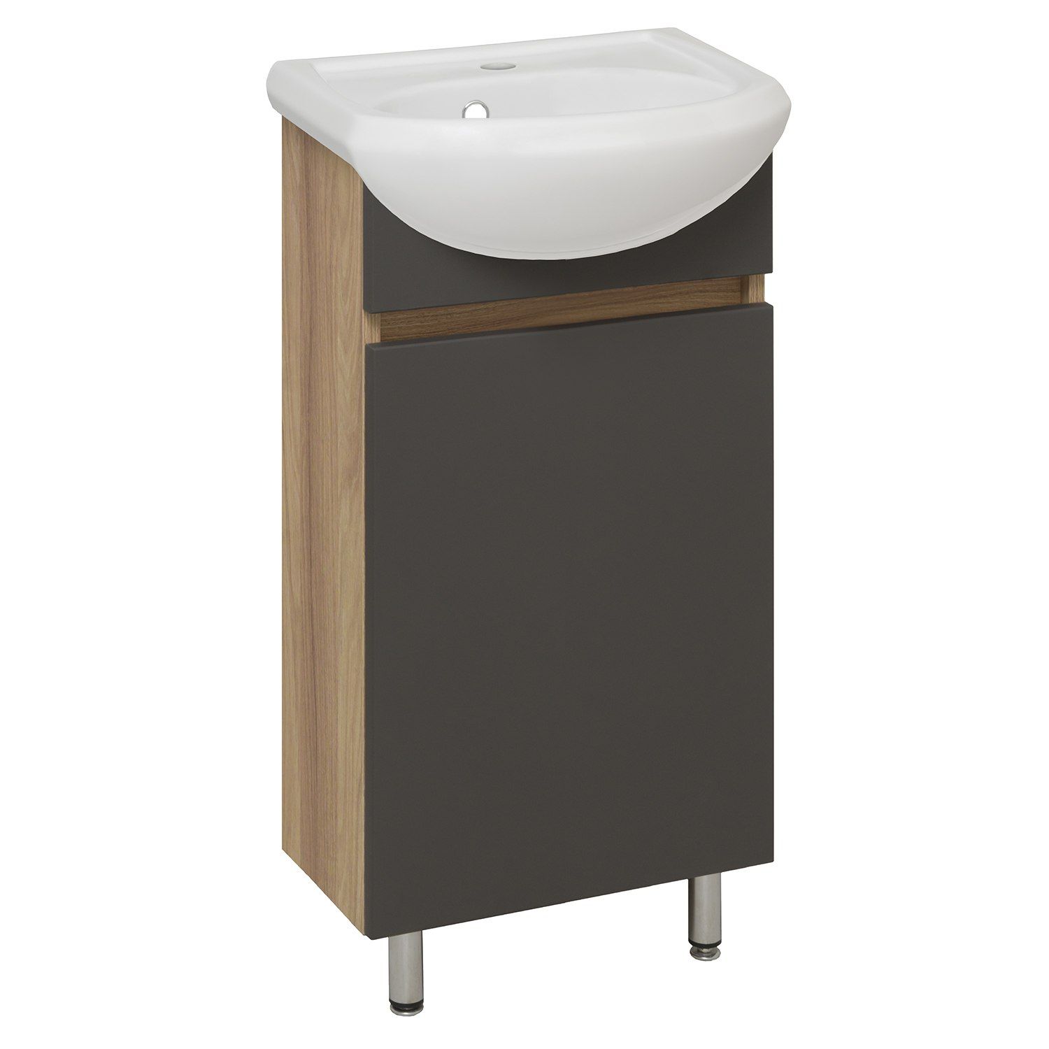 Тумба с раковиной RUNO ЛАДА - модное и оригинальное решение для бюджетного оснащения ванной комнаты. Тумба под раковину ЛАДА (напольная) выполнена в двух цветах - классическом белом и в стильном цвете - графит/серый дуб . Тумба в ванную имеет две распашные дверцы и одну внутреннюю полку. В комплекте идут петли со встроенным доводчиком, 2 хромированные и 2 пластиковые ножки. Тумба для ванной комплектуется раковиной из сантехнического фарфора "Манго" (407х330 мм). Раковина имеет глубину 17 см. Мебель для ванной RUNO - красота и практичность в мелочах!