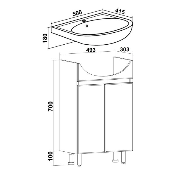 Тумба с раковиной RUNO ЛАДА - модное и оригинальное решение для бюджетного оснащения ванной комнаты. Тумба под раковину ЛАДА (напольная) выполнена в двух цветах - классическом белом и в стильном цвете - графит/серый дуб . Тумба в ванную имеет две распашные дверцы и одну внутреннюю полку. В комплекте идут петли со встроенным доводчиком, 2 хромированные и 2 пластиковые ножки. Тумба для ванной комплектуется керамической раковиной "Уют" (500*420 мм). Раковина имеет глубину 18 см. Мебель для ванной RUNO - красота и практичность в мелочах!