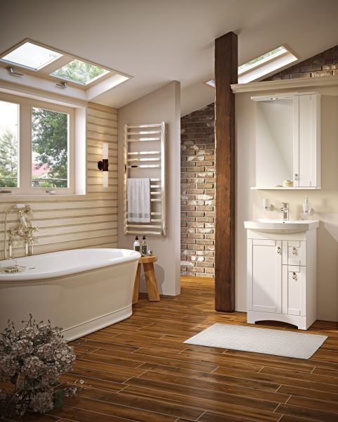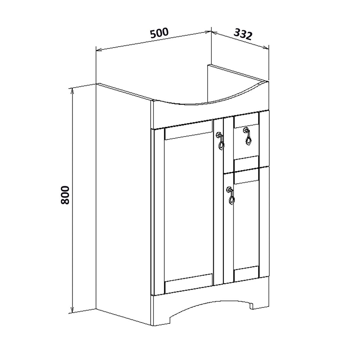 Коллекция мебели «Мерида» выполнена в классическом стиле. Четкие и лаконичные формы, продуманный функционал помогут украсить интерьер любой ванной комнаты. Тумба напольная с двумя распашными фасадами и боковым выдвижным ящиком справа. За левым фасадом - одна внутренняя полка. Ящик - на шариковых направляющих полного выдвижения, петли со встроенным доводчиком, ручки - 3шт, ножки пластик - 4шт (скрыты за нижней фальш-панелью)