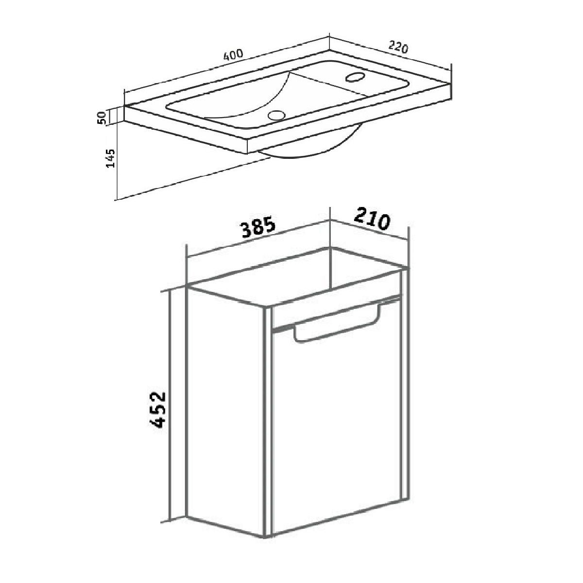 Тумба под умывальник подвесная с одним распашным фасадом, открывающимся слева направо (петли справа). Петли со встроенным доводчиком, навесы - 2шт.