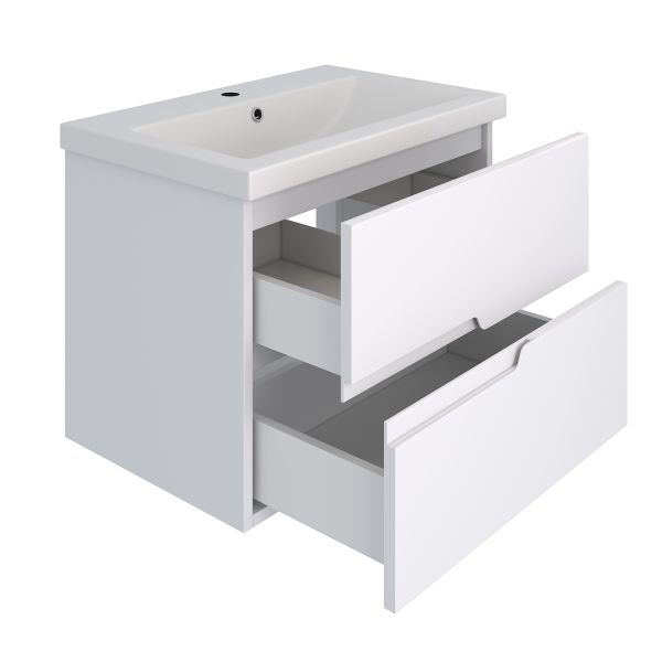 Подвесная тумба функционально состоит из двух ящиков на шариковых направляющих скрытого монтажа с доводчиком. Модель комплектуется умывальником "Como" 70см ТМ Cersanit.