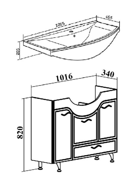 Тумба под умывальник напольная с двумя распашными фасадами, откидной дверкой посередине и нижним выдвижным ящиком. Фасад слева откидной и укомплектован встроенной корзиной для белья. Петли со встроенным доводчиком, ящик - на шариковых направляющих полного выдвижения, ручки - 4шт, ножки хром -2шт, ножки пластик - 2шт.