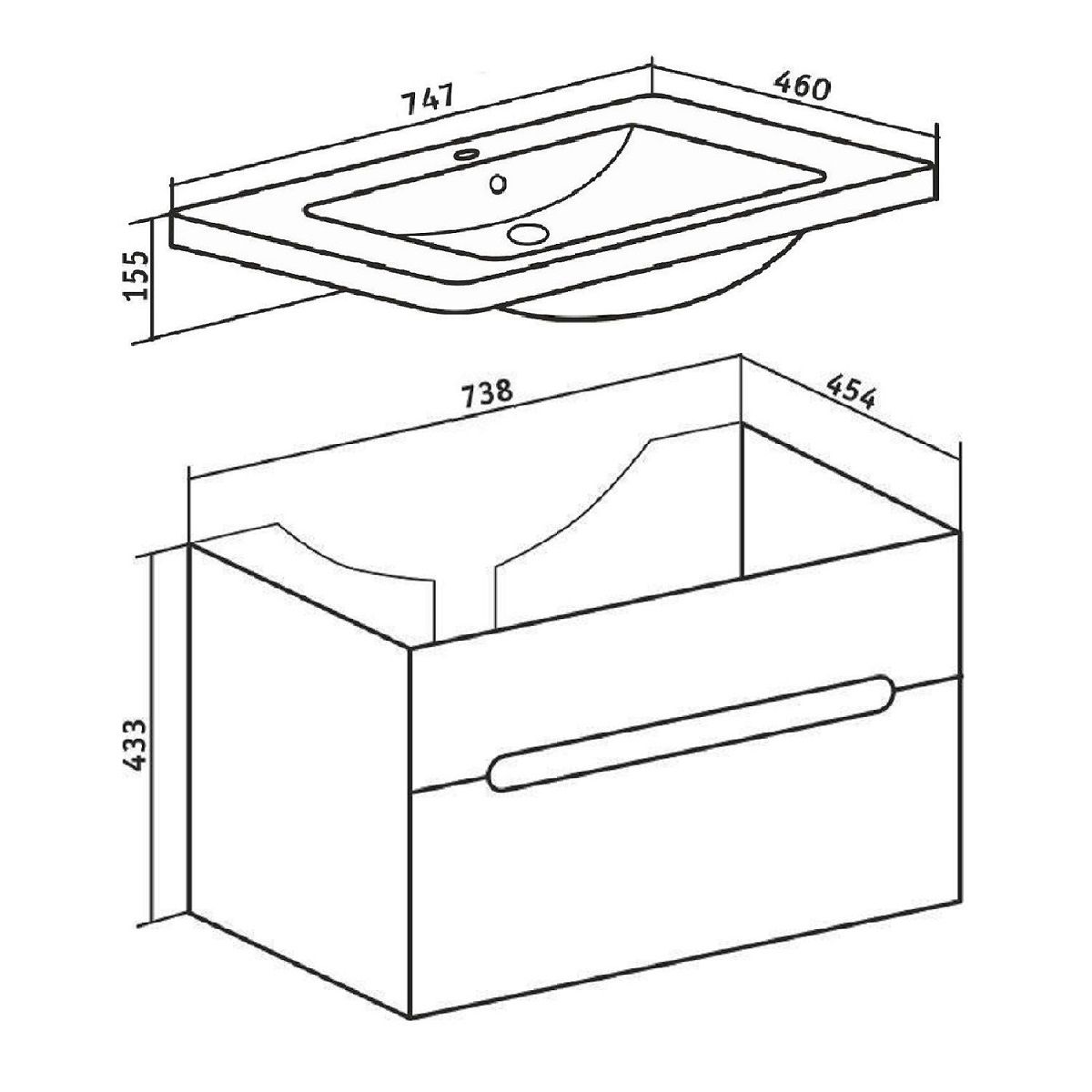 Тумба под раковину Runo подвесная 1 ящик (под умывальник Omega 75) Парма 75 (00000001140)
