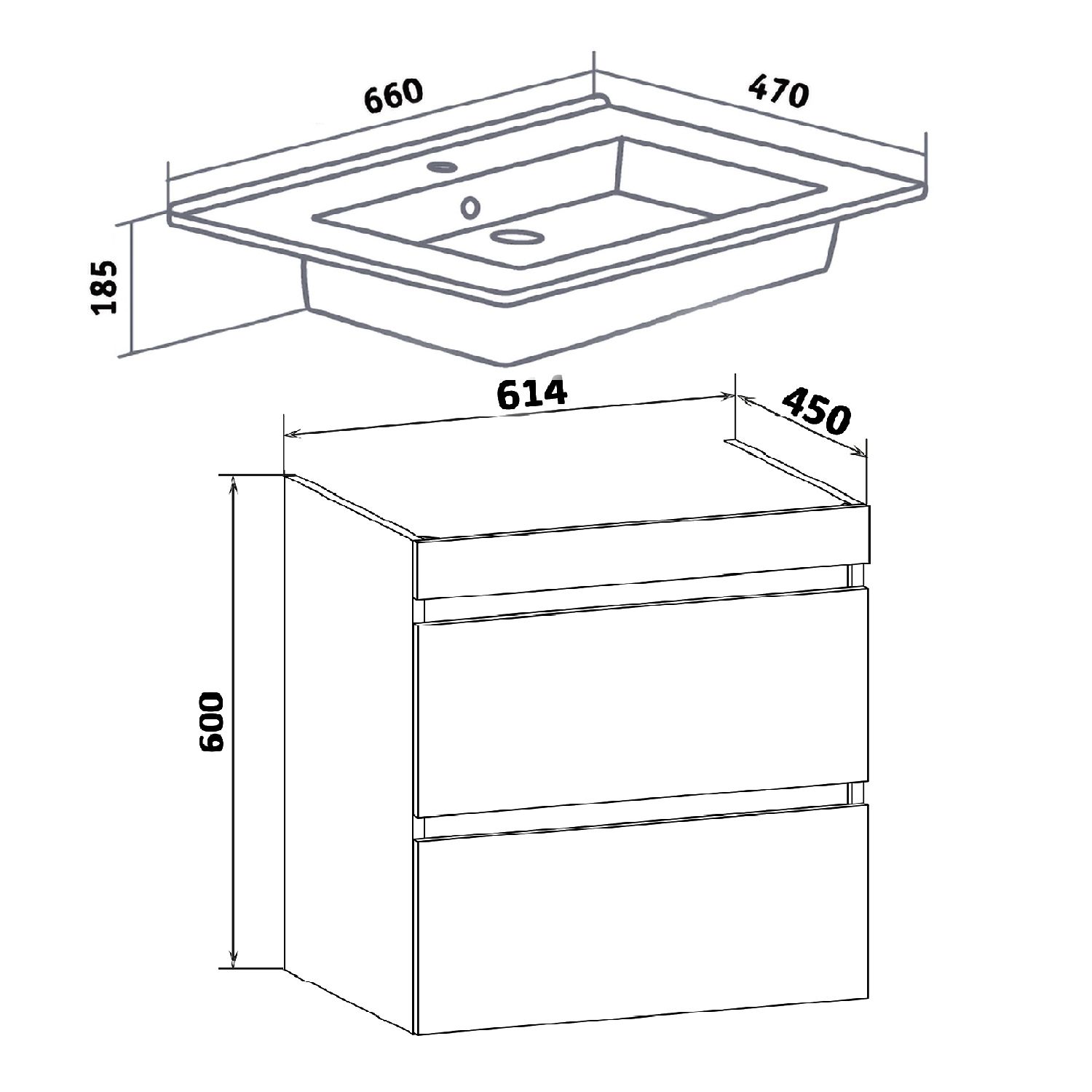 Коллекция мебели "Манхэттен" выполнена в современном стиле. Корпус изделий изготовлен из белого ЛДСП, а фасады облицованы матовой пленкой ПВХ цвета "серый бетон". Тумба под умывальник подвесная с двумя выдвижными ящиками на шариковых направляющих с доводчиком. Навесы - 2шт.