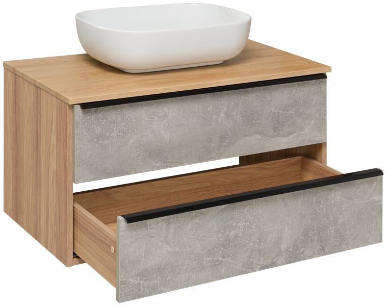 Подвесная тумба функционально состоит из двух ящиков на шариковых направляющих с механизмом плавного закрывания. Модуль может комплектоваться различными по размеру и дизайну накладными умывальниками. Мы предлагаем раковины известного европейского производителя Square 60,Moduo LEAF от Церсанита, Гамма 56 либо Infinity 65