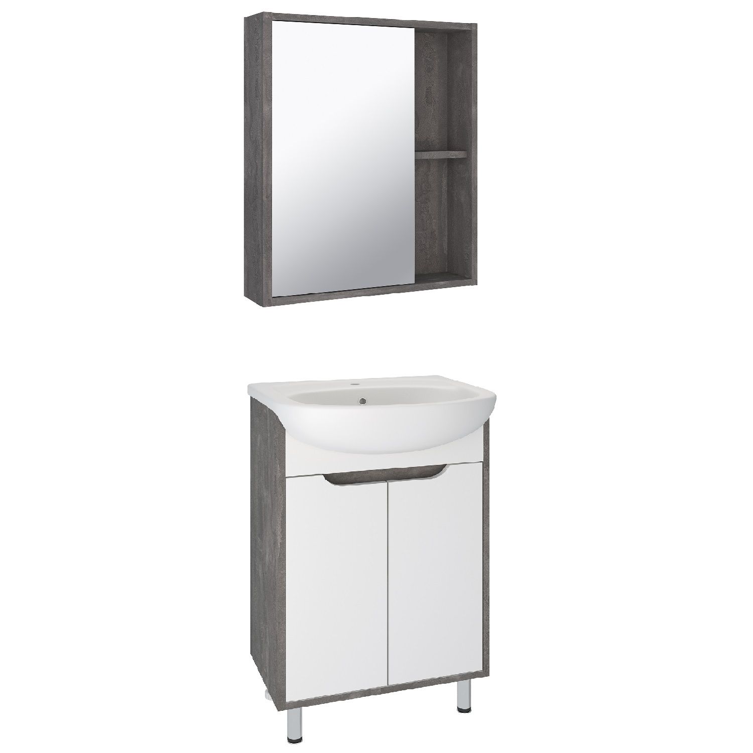 Тумба с раковиной RUNO ЭКО - превосходное решение для современного оснащения ванной комнаты. Тумба под раковину ЭКО (напольная) это стильное сочетание текстуры природного необработанного камня на корпусе с белыми фасадами из ДСП. Тумба в ванную имеет две распашные дверцы и одну внутреннюю полку. В комплекте идут петли, 2 хромированные и 2 пластиковые ножки. Тумба для ванной комплектуется керамической раковиной "Уют" (500*420 мм). Раковина имеет глубину 18 см. Мебель для ванной RUNO - красота и практичность в мелочах!