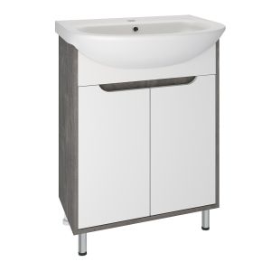 Тумба с раковиной RUNO ЭКО - превосходное решение для современного оснащения ванной комнаты. Тумба под раковину ЭКО (напольная) это стильное сочетание текстуры природного необработанного камня на корпусе с белыми фасадами из ДСП. Тумба в ванную имеет две распашные дверцы и одну внутреннюю полку. В комплекте идут петли, 2 хромированные и 2 пластиковые ножки. Тумба для ванной комплектуется керамической раковиной "УЮТ" (610*470 мм). Раковина имеет глубину 21 см. Мебель для ванной RUNO - красота и практичность в мелочах!