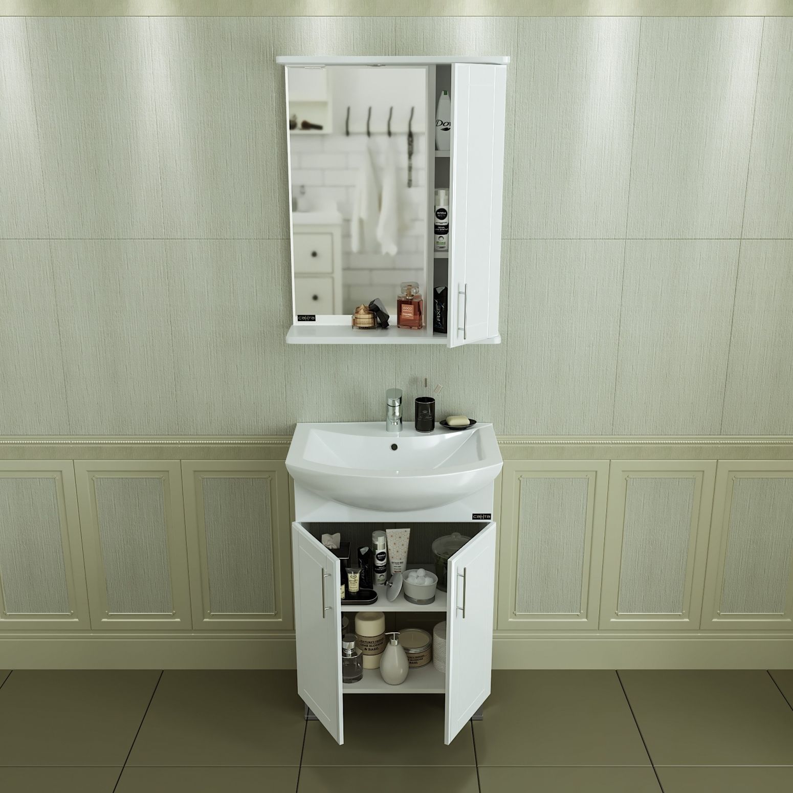 Тумба для комплекта СанТа подойдет как для просторной ванной комнаты, так и для небольшого помещения. Напольный способ установки производится непосредственно на пол, при этом конструкция максимально устойчива при серьезных физических нагрузках.В производстве используют только качественные влагостойкие материалы (ВЛДСП), в составе которых полностью отсутствуют опасные вещества. Серия Венера отличается превосходным дизайном с соблюдением всех ключевых элементов современного стиля. Основным цветом, в котором выполнена тумба под раковину СанТа является белый, гармонирующий с большинством интерьерных решений. Тумба под раковину предусматривает удобную и вместительную систему хранения, состоящую из полок и дверей.Страной бренда СанТа является Россия, все товары производятся с выполнением соответствующих стандартов качества, что позволяет быть полностью уверенными в долговечности и надежности. Тумба для комплекта СанТа поможет сделать уютным любой интерьер и создать идеальную ванную комнату.