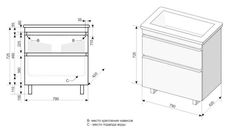 Тумба под раковину Style Line Атлантика 80 СС-00000604