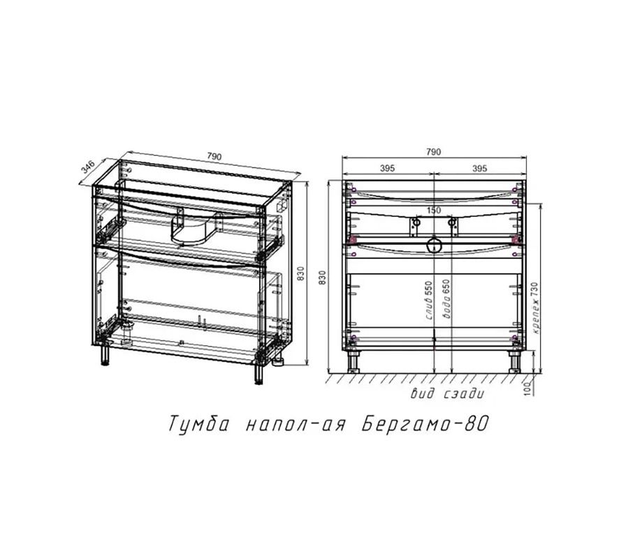 Тумба под раковину Style Line El Fante Бергамо мини 80 Люкс антискрейтч Plus, 80 см, напольная, белая, СС-00002314Основные характеристики:Тумба под раковину