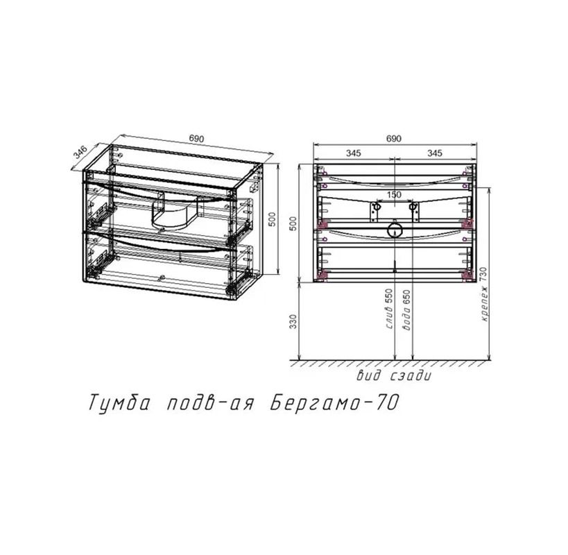 Тумба под раковину Style Line Бергамо СС-00002320 мини 70 Люкс антискрейтч Plus 70 см