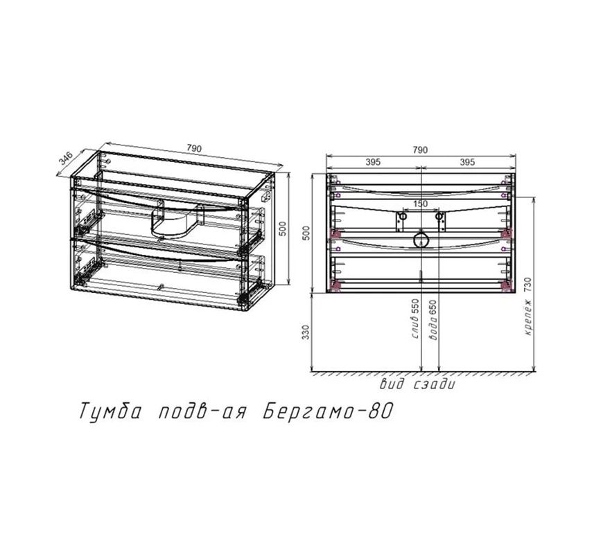 Тумба под раковину Style Line El Fante Бергамо мини 80 Люкс антискрейтч Plus, 80 см, подвесная, серый, СС-00002323Основные характеристики:Тумба под раковину