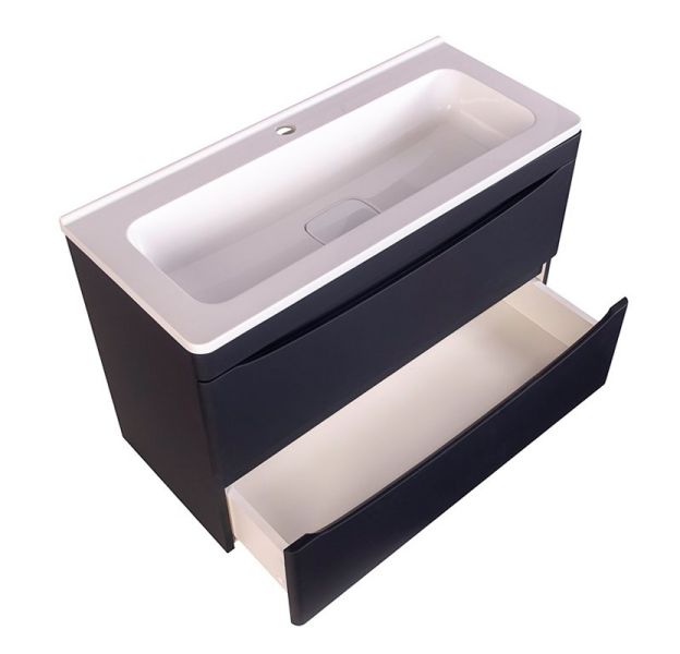 Тумба под раковину Style Line El Fante Бергамо мини 80 Люкс антискрейтч Plus, 80 см, подвесная, черный, СС-00002324Основные характеристики:Тумба под раковину
