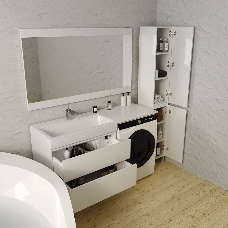 Тумба под раковину Style Line Даллас Люкс Plus 140 L СС-00002386 подвесная под стиральную машину.Характеристики:Цвет: белый.