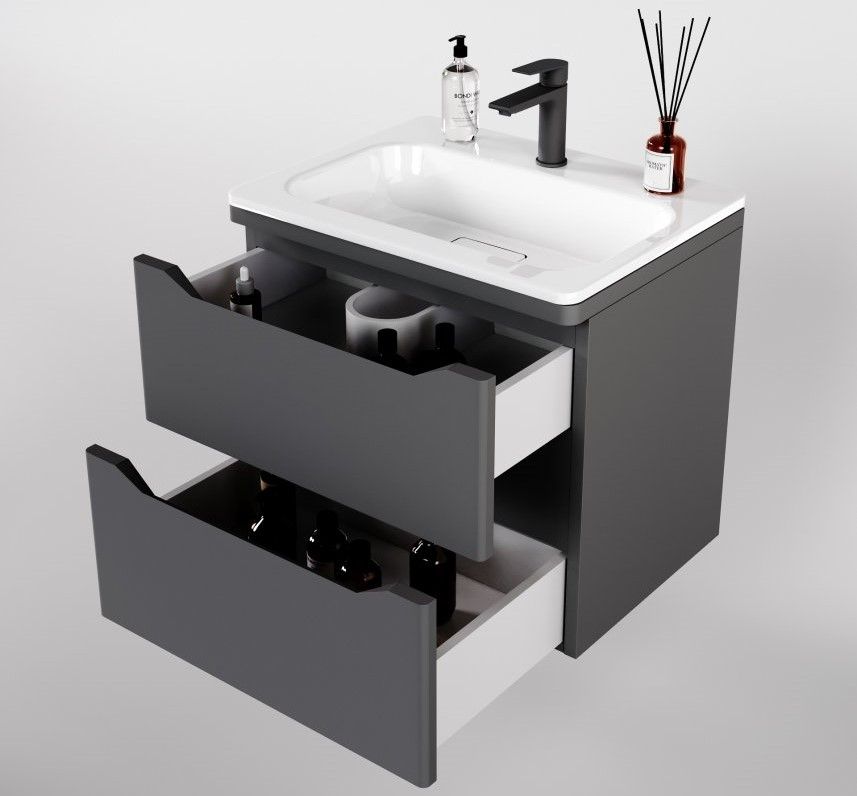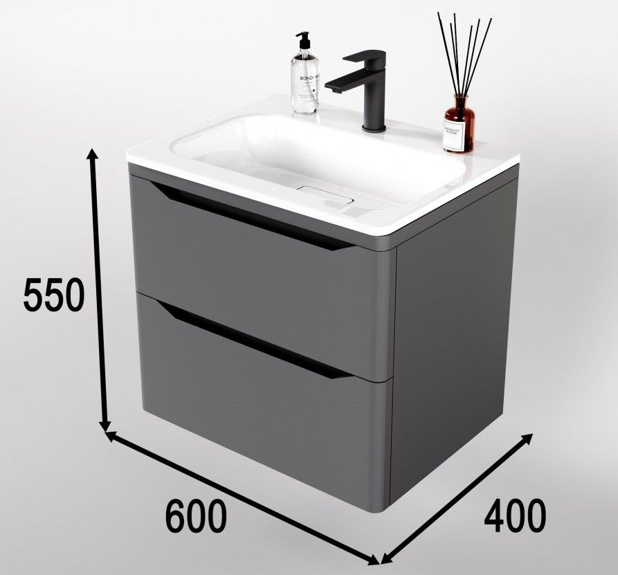 Тумба под раковину Style Line Марелла 60 Люкс Plus СС-00002406 серый матовый