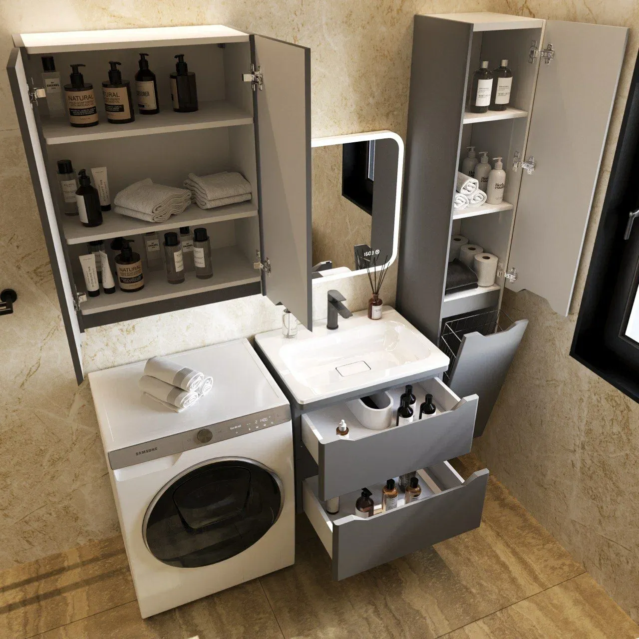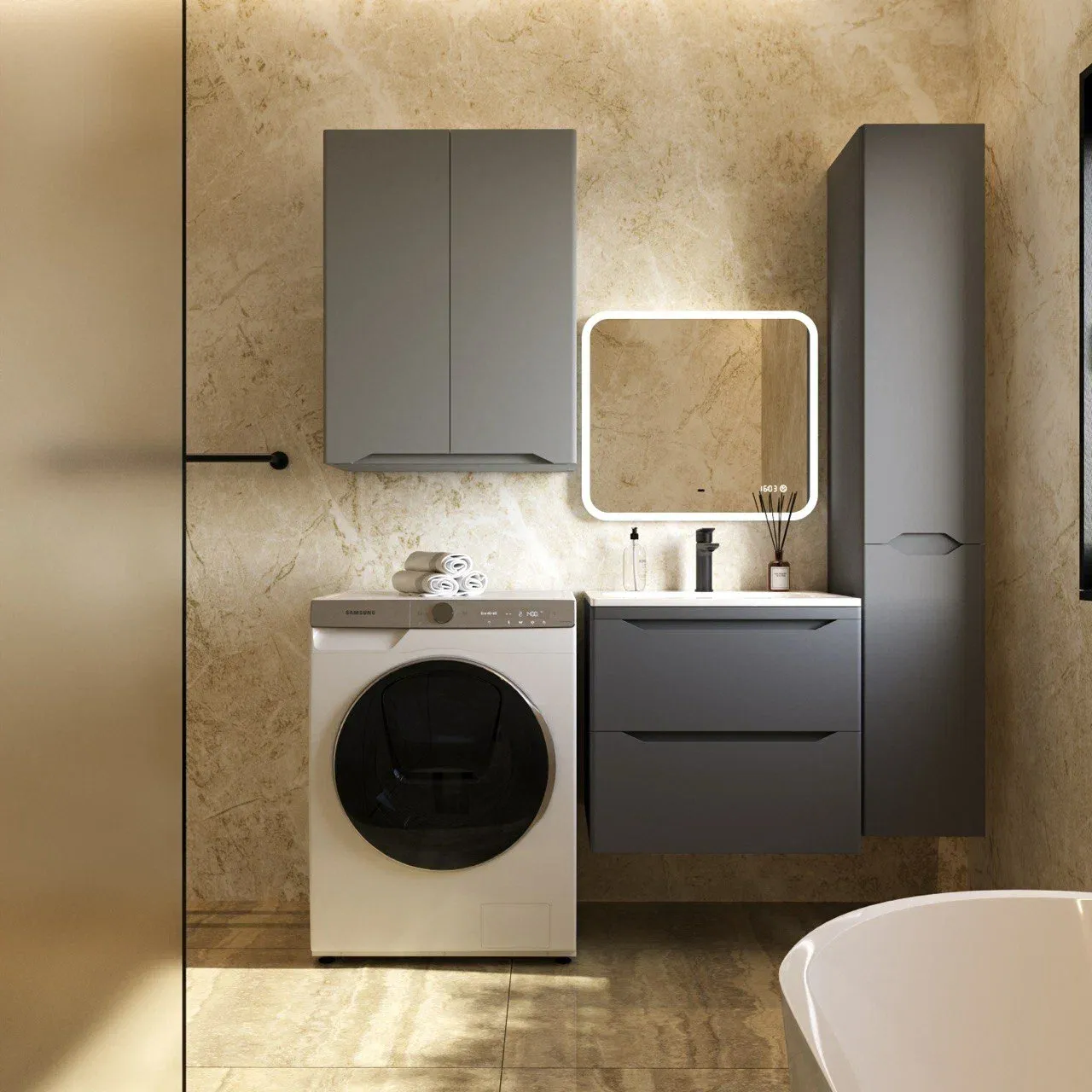 Тумба под раковину Style Line Марелла 60 Люкс Plus СС-00002406 серый матовый купить