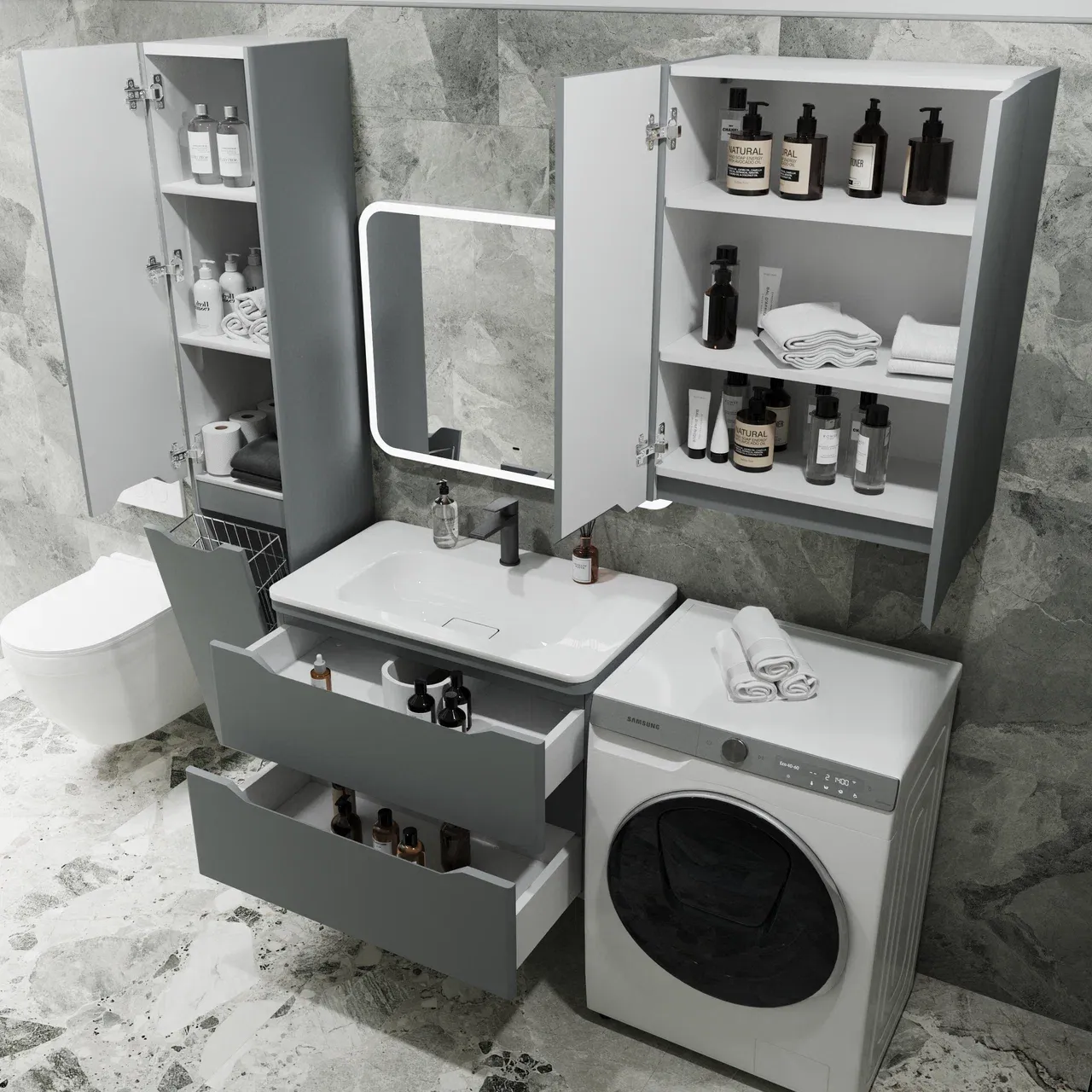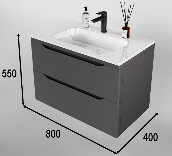 Тумба под раковину Style Line Марелла 80 Люкс Plus СС-00002412 серый матовый