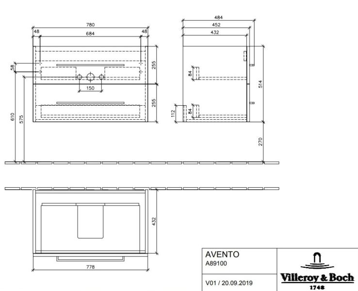 Тумба под раковину Villeroy Boch Avento A89100VH подвесная купить