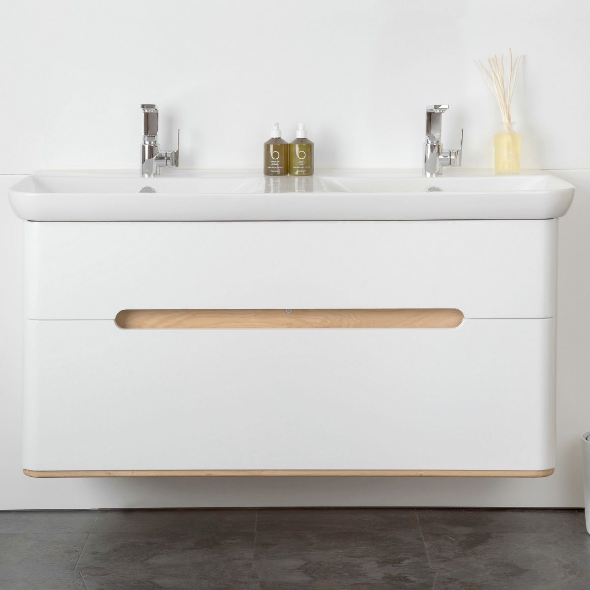 Шкаф Sento с раковиной, с 2 ящиками, 80 см, с LED подсветкой, цвет матовый белый ( ножки 61069 заказываются отдельно )