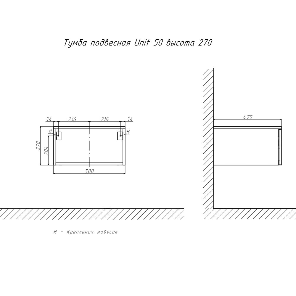 Тумба подвесная без столешницы Velvex Unit tp.UNI.50.1Y белый глянец, 50 см