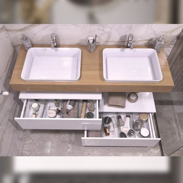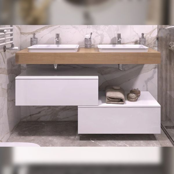 Тумба подвесная без столешницы Velvex Unit tp.UNI.80.1Y белый глянец, 80 см: 1 выдвижной ящик со стеклянными разделителями.