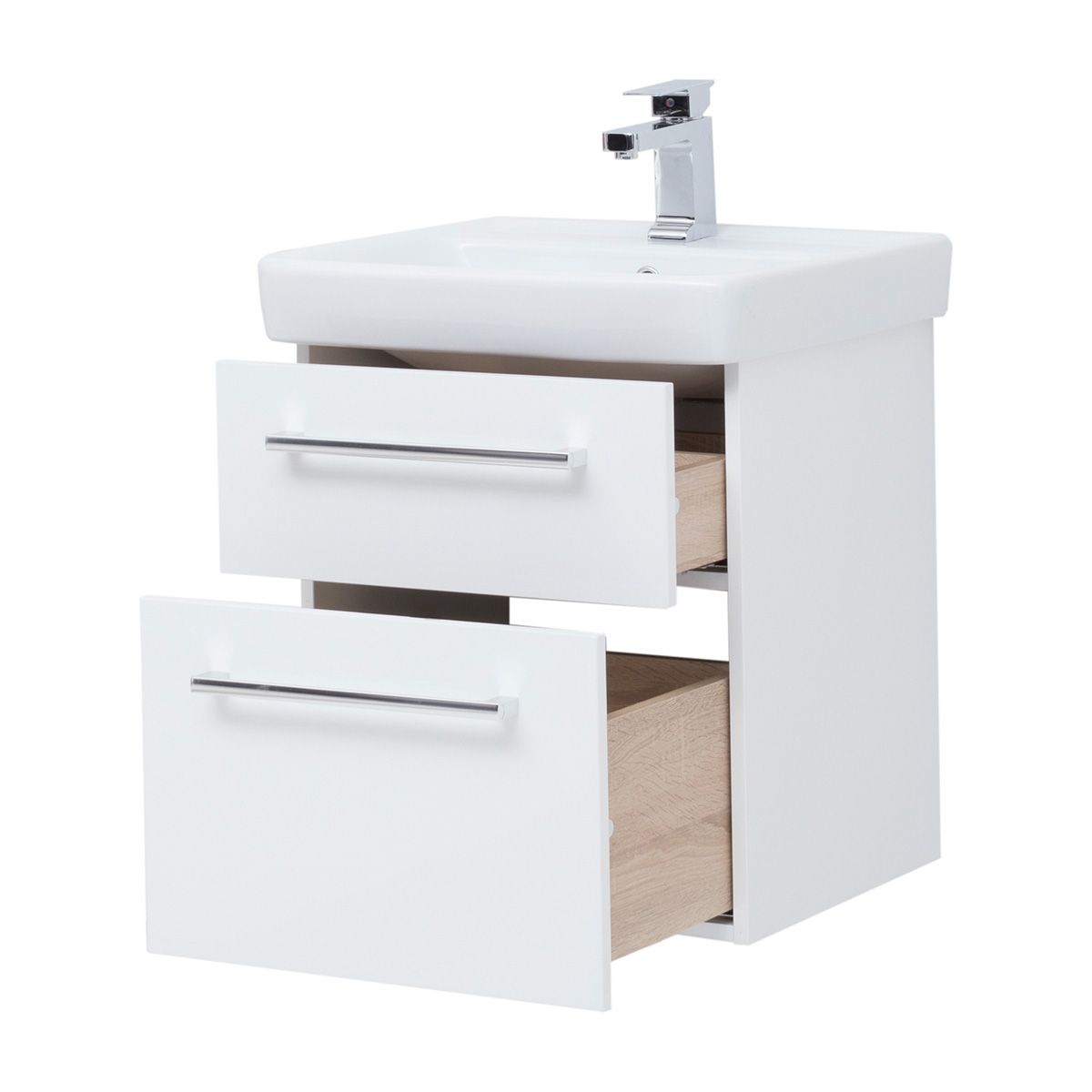 Подвесная современная коллекция в 4-х размерах с 2-мя выдвижными ящиками с доводчиками Hettich Возможна комплектация зеркалом, зеркальным шкафом, пеналом, полупеналом.