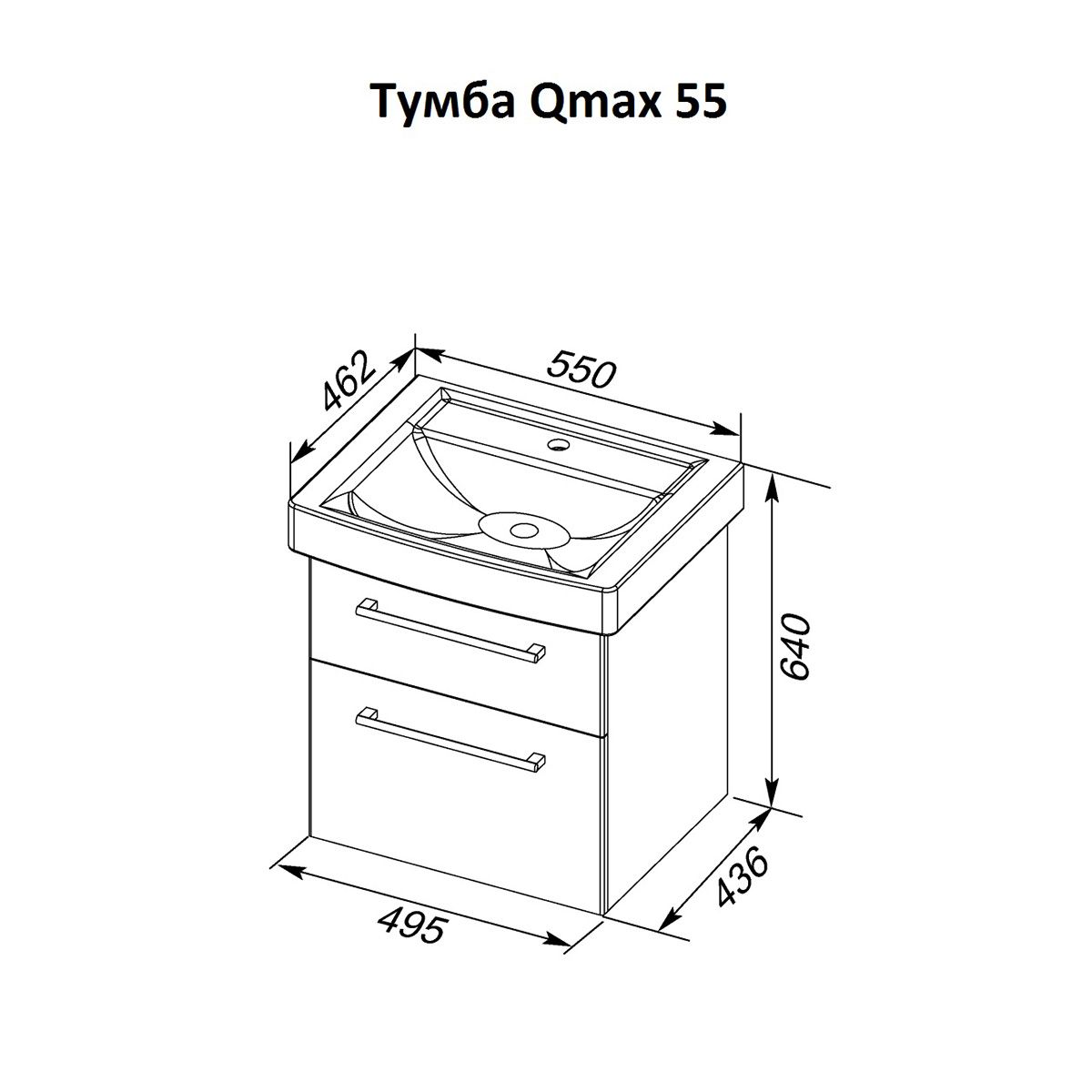 Тумба подвесная Dreja.Rus Q MAX 55 под умывальник Q-55, белый глянец купить