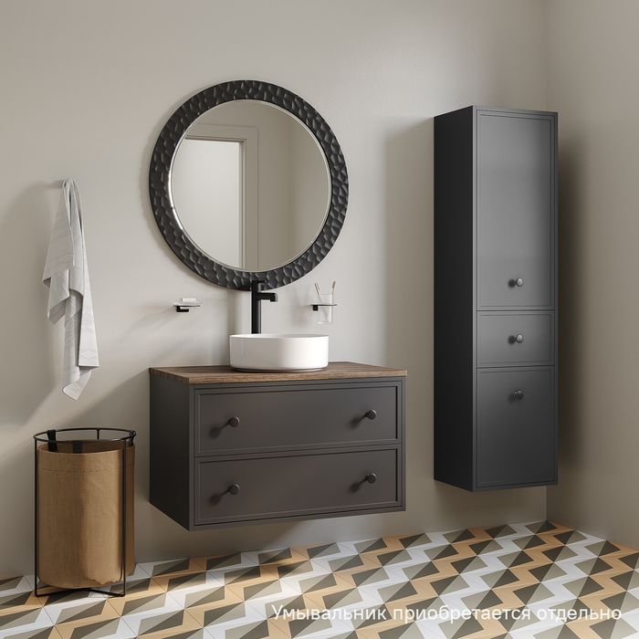 Вместительная подвесная тумба Torr трендового темно-серого цвета со столешницей из МДФ в оттенке ореха макадамия. Сочетает в себе узнаваемый стиль и практичность популярного скандинавского дизайна. Ее четкие формы, теплый цвет дерева, фасады с декоративной филенкой, круглые ручки смотрятся гармонично и впишутся в любой современный интерьер. Подойдет любой накладной умывальник, покупается отдельно.