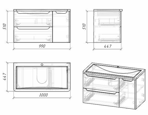 Тумба подвесная под раковину Grossman Adel 1010001 100см белая