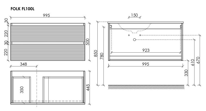 Тумба подвесная под раковину Sancos Folk FL100LCP левая 100 см капучино