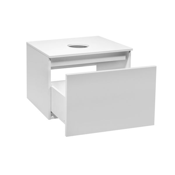 Тумба под раковину в ванную RUNO БАРИ (подвесная) - безупречное сочетание модных тенденций с классическим оформлением ванной комнаты. Тумба под раковину БАРИ оснащена выдвижным ящиком на шариковых направляющих, с системой плавного закрывания. Цвет тумбы классический - белый, что идеально подходит для любого интерьера ванной комнаты. К тумбе для ванной подойдут умывальники на столешницу: «OVALE 50» (50х36см) - идеальное решение для стильного интерьера ванной, создан для минималистичных интерьеров и подойдёт для санузлов в стиле лофт, минимализм и хай-тек. Строгая овальная геометрически правильная форма раковины, усиливает идею лаконичности в дизайне, устанавливается на столешницу, накладным методом. «PALLA D41» (диаметр 41см) - идеальное решение для стильного интерьера ванной, создан для минималистичных интерьеров и подойдёт для санузлов в стиле лофт, минимализм и хай-тек. Строгая круглая геометрически правильная форма раковины, усиливает идею лаконичности в дизайне, устанавливается на столешницу, накладным методом. «TRE 48» (48х37см) - идеальное решение для стильного интерьера ванной, создан для минималистичных интерьеров и подойдёт для санузлов в стиле лофт, минимализм и Хай-Тек. Строгая прямоугольная форма с округлыми углами усиливает идею лаконичности в дизайне, устанавливается на столешницу, накладным методом. «TERZO 60» (59х39см) - идеальное решение для стильного интерьера ванной, создан для минималистичных интерьеров и подойдёт для санузлов в стиле лофт, минимализм и хай-тек. Асимметричная раковина, которую можно установить любой стороной, дизайнерское решение для нестандартных интерьеров, усиливает идею лаконичности в дизайне, устанавливается на столешницу, накладным методом.