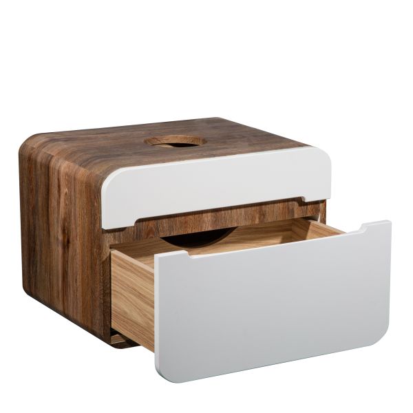 Тумба под раковину RUNO НИЦЦА - сочетание безупречного стиля и современных тенденций в дизайнерском оформлении ванной комнаты. Тумба Ницца (подвесная) с обтекаемыми формами станет прекрасным дополнением в интерьере Вашей ванной комнаты, выполнена в сочетании корпуса с текстурой темного дерева с белыми фасадами. Плавные линии в сочетании с фактурным покрытием сделают обстановку вашей ванной максимально теплой и уютной. Придадут изысканность и завершенность домашней обстановке. Тумба оснащена одним выдвижным ящиком с бесшумными шариковыми направляющими полного выдвижения, навесами для крепления к стене. Функцию ручки выполняет декоративный вырез. Фасады тумбочки изготовлены из МДФ. К тумбе для ванной подходят накладные раковины: круглая - PALLA D41, прямоугольная - TRE 48, овальная - OVALE 50, треугольная - TERZO 60, и множество других раковин разнообразных размеров и цветов . Наполните свой дом качественными предметами интерьера. Мебель для ванной RUNO - красота и практичность в мелочах! Цвет товара на мониторе может отличаться от реальных цветов, это зависит от настроек цветового профиля и разрешения Вашего монитора или мобильного устройства.