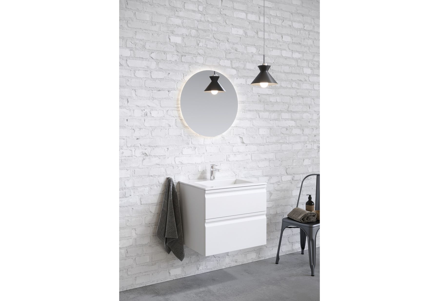 Мебельная раковина: Раковина из 100% санфарфора с идеальной гладкой поверхностью не только выглядит стильно, но и обеспечивает легкость в уходе. Несмотря на компактную глубину, раковины обладают достаточно вместительной чашей, предотвращающей разбрызгивание воды.