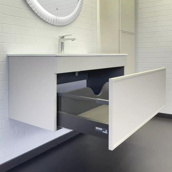 Тумба с раковиной Comforty Мадрид 00-00017880 101 см Серый шелкПодвесная тумба с одним большим выкатным ящиком оборудованным направляющими с системой плавного закрывания. Корпус тумбы изготовлены из влагостойкого ЛДСП. Фасад тумбы из МДФ фрезерован кантом по периметру. Подпорная царга фрезерована вертикальным узором. Корпус и фасад тумбы затянуты в матовую пленку цвета серый шёлк. Тумба подготовлена для подключения водоснабжения снизу и сзади.Характеристики:Тумба:Цвет: серый шелк.