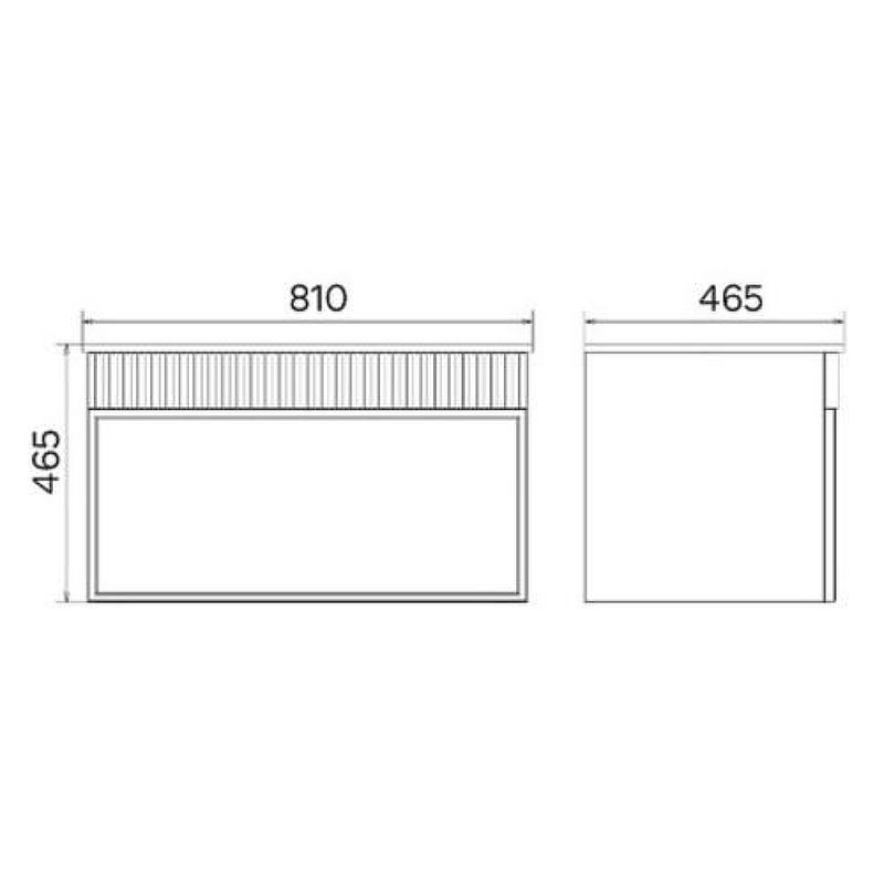 Габариты тумбы с раковиной (ШхВхД): 810х465х465 мм.