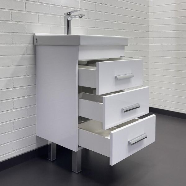 Тумба с раковиной Comforty Никосия 00-00018023 50 см белыйНапольная тумба с тремя выдвижными ящиками, оснащенным системой плавного закрывания. Тумба подготовлена для подключения водоснабжения снизу.Характеристики:Тумба:Цвет: белый глянец.