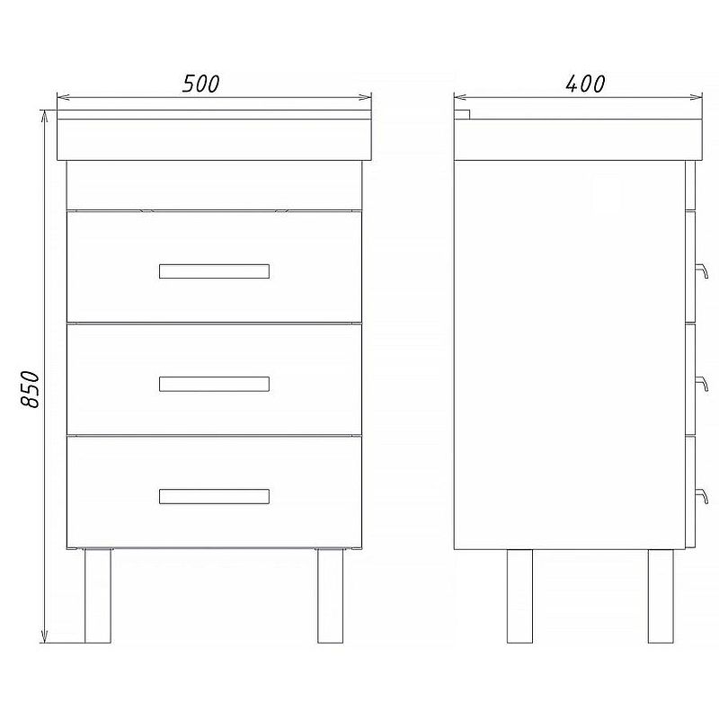 Габариты тумбы с раковиной (ШхВхД): 500х850х400 мм.