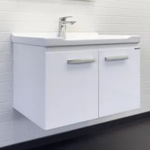 Тумба с раковиной Comforty Рига 00-00018684 72 см белыйПодвесная тумба-умывальник шириной 70 см в современном стиле с двумя распашными створками для хранения принадлежностей для умывания и бытовой химии. Петли створок оснащены механизмами плавного закрывания. Фасады и корпус из влагостойкого ЛДСП. Корпус из ДСП белого цвета, фасады - окрашены глянцевой эмалью белого цвета. За створками вертикальная перегородка по центру и горизонтальная полка справа. В комплекте с тумбой гарантийный талон и необходимый крепеж для монтажа на стену. Тумба подготовлена для подключения водоснабжения снизу. Цвет: белый глянец. Габариты (ШхВхГ): 720*550*470 мм. Комплектация: фарфоровая раковина Comforty 9335-70