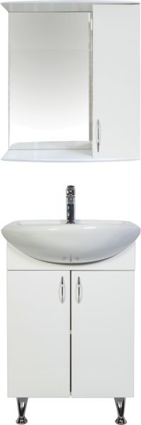 Напольная тумба с раковиной. Дверки c механизмом доводчика, обеспечивающим плавное закрывание. Фасад МДФ в пленке, цвет белый глянец. Корпус ЛДСП - белый глянец. Раковина - фарфор. Фурнитура в цвете хром. В комплекте н-р ножек и внутренняя полочка. Зеркальный шкаф для комплекта (арт. LA-50TUW+RA) приобретается дополнительно.