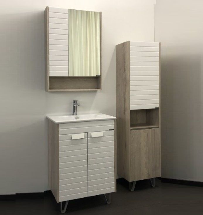 Тумба-умывальник Comforty Клеон 60Н белый/дуб дымчатый с раковиной Quadro 60 Подробнее