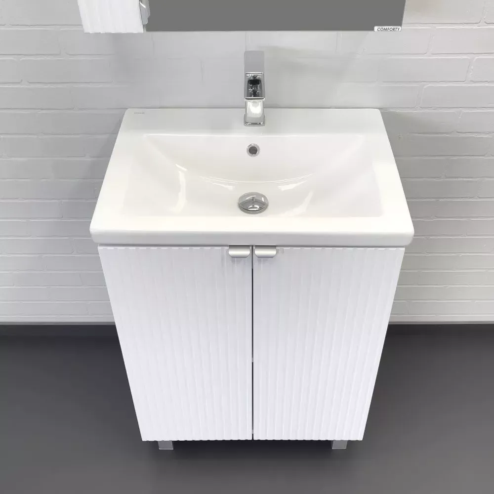 Тумба-умывальник Comforty Лима-60Н белый матовый с раковиной Como 60