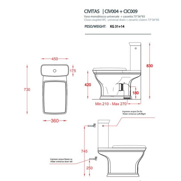 Унитаз Artceram Civitas CIV004 34 00 серый купить