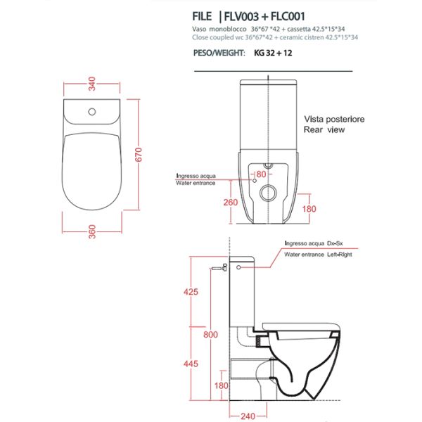 Artceram FILE 2.0 Унитаз чаша моноблока, 67х37хh42см, слив универсальный, с крепежом, цвет: черный матовый