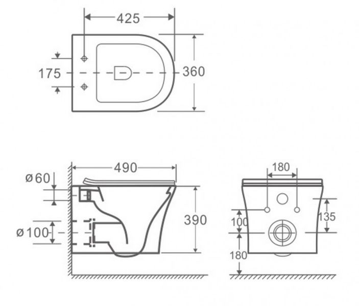 • Прилегание унитаза к стене: