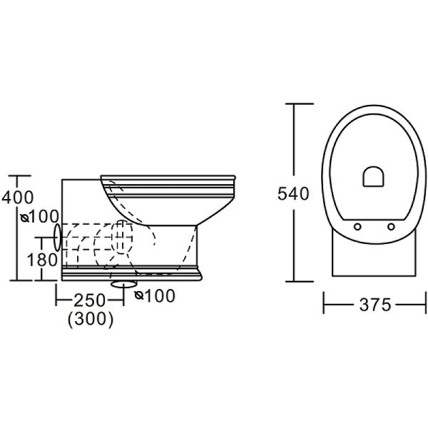 Габариты унитаза (ШхВхД): 37.5х40х54 см.